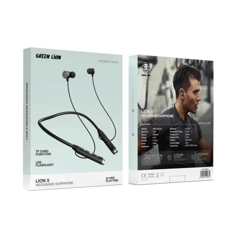 هندزفری بلوتوث دورگردنی لاین ایکس گرین لاین Green Lion Lion X Neckband Earphone Green Lion Lion X Neckband Earphone GL-N