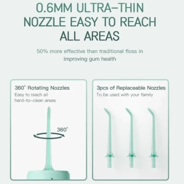 شتشو دهنده دهان و دندان شیائومی Xiaomi Enchen Mint 3 دستگاه شست و شوی دهان و دندان شیائومی Xiaomi Enchen Mint 3 وسیله ای است که با پاشیدن آب با فشار، باعث از بین بردن هرگونه جرم و میکروب و مواد غذایی باقی مانده بین دندان ها و لثه می شود و همچنین باعث پاکسازی باکتری ها و موارد دیگر آسیب رسان به دندان ها هم می گردد. نقاطی از دهان هستند که به وسیله مسواک و نخ دندان قابل دسترسی و تمیز کردن نمی باشند که استفاده از این دستگاه تمیز کردن آن نواحی را آسان کرده است. واترجت دهان و دندان برای افرادی که دارای ارتودنسی، روکش دندان، ایمپلنت، پروتز و دندان مصنوعی هستند، می تواند یک انتخاب بسیار عالی باشد. واترجت های دندانی می توانند باکتری هایی که در اعماق لثه ها هستند را با فشار آب خارج کنند که این ویژگی در دستگاه های دیگر پاک کننده دندان و لثه ها دیده نمیشود. طبق تحقیقات صورت گرفته، تاثیر واترجت دندان تقریبا دو برابر مسواک زدن و نخ دندان کشیدن است. ویژگی ظاهری نازل های دهان شوی شیائومی Mint 3 طول مناسبی دارند تا شما بتوانید به راحتی قسمت های مختلف دهان خود را تمیز کنید. به همین دلیل امکان گردش 360 درجه نیز برای آن وجود دارد. قسمت بالایی این نازل حالتی خمیده دارد که امکان استفاده از آن برای شما راحت تر باشد. قطر دهانه نازل دهان شوی شیائومی 0.6 میلی متری بوده که شما می توانید به خوبی بین شکاف ها دندان را تمیز کرده و شستشو دهید. وزن واتر جت شیائومی حدود 190 گرم است. عملکرد فوقالعاده واتر جت Xiaomi Enchen Mint 3 از آخرین فناوری پالس و یک تراشه هوشمند داخلی برای کنترل دقیق پالس آب با فشار بالا (1900 بار در دقیقه) استفاده می کند تا به شکاف بین دندان ها نفوذ کرده و باقی ماندههای غذای بین آنها و پلاک های دندانی را به راحتی پاکسازی و دندان ها را تمیزتر کند. با مسواک زدن تنها، حدود 40 درصد از پلاک ها و جرم هایی که میان دندان وجود دارند همچنان باقی مانده و به درستی پاک نمی شوند. استفاده از نخ دندان هم به خوبی نمی تواند این جرم ها را پاک کند. شیائومی توانسته با به کار گیری فشار آب و طراحی یک نازل مخصوص، کمک به پاک کردن و از بین بردن این جرم ها و پلاک ها کند و دندان های شما و بین آن ها را که دسترسی سختی دارند، به بهترین شکل ممکن تمیز نماید. ظرفیت 140 میلی لیتری ظرفیت مخزن دهان شوی شیائومی 140 میلی لیتر است که هنگام استفاده باید درون آن آب بریزید. سپس دستگاه، آب درون مخزن را با فشار زیاد خارج ساخته و شما می توانید با این حالت بین دندان ها، روی آنها و حتی روی زبان خود را به خوبی تمیز کنید. فشار بالای دستگاه به خوبی جرم ها را از بین می برد. با استفاده از این محصول حتی امکان پاک کردن دندانهای ارتودنسی نیز برای شما وجود دارد نازل جداشدنی شایان ذکر است که نازل دهان شویه Xiaomi را می توان برای قرار دادن در مخزن آب برداشت که به همراه داشتن آن در سفر آسان است. به علاوه شستشوی آن راحتتر می شود. دارای 3 سرعت مختلف و فشار آب یکسان دستگاه شست و شوی دهان و دندان شیائومی دارای 3 حالت سرعت ملایم، استاندارد و قوی برای تمیز کردن دندان های شما است. شما می توانید متناسب با شرایط دهان و دندانهایتان، حالت مورد نظر را انتخاب کنید. یکی از قابلیت های مهم دستگاه شست و شوی دهان و دندان شیائومی پایداری فشار آب است. این قابلیت باعث شده که در هنگام کاهش باتری، فشار آب هیچ تغییری نکند. ویژگی های باتری باتری دستگاه شست و شوی دهان و دندان شیائومی با یک بار شارژ کامل، برای حدود 20 روز استفاده کافی است. البته این زمان بستگی به مدت استفاده روزانه شما دارد. یکی از ویژگی های قابل توجه واتر جت شیائومی خاموش شدن خودکار پس از 3 دقیقه در صورت عدم استفاده از آن است. مناسب برای دندان های ارتودنسی تمیز کردن دندان های ارتودنسی کار چندان ساده ای نیست. دستگاه شستشوی دهان و دندان شیائومی امکان پاک کردن دندان های ارتودنسی را برای شما آسان می کند. بنابراین می توانید کثیفی ها و جرم های باقی مانده از مواد غذایی را حتی برای دندان ها