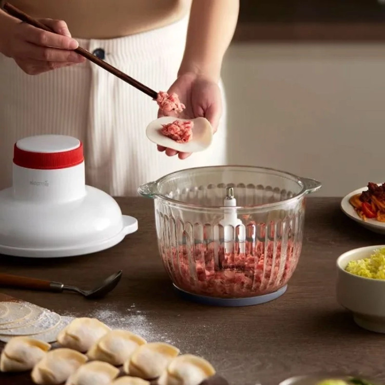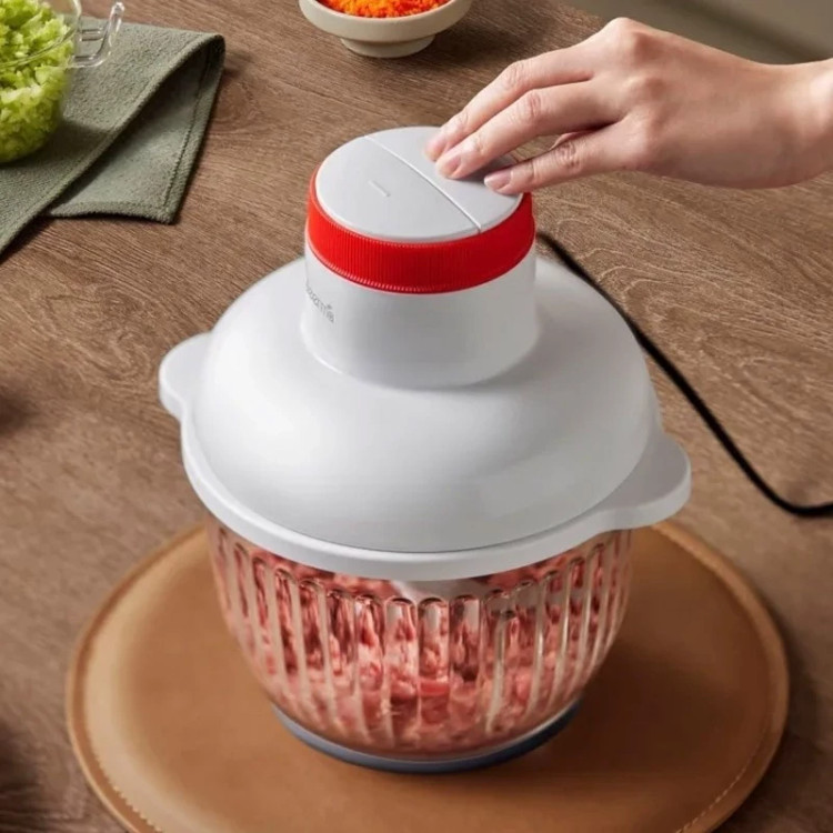 معرفی چرخ گوشت و غذا ساز چند منظوره 2 لیتری Deerma JR10W چرخ گوشت و غذا ساز چند منظوره 2 لیتری Deerma JR10W با قابلیت های چند گانه و طراحی هوشمندانه خود، نه تنها یک وسیله کاربردی در آشپزخانه است، بلکه یک همراه قابل اعتماد برای تهیه غذاهای خوشمزه و سالم به شمار می رود. این دستگاه با توانایی خرد کردن و آسیاب کردن مواد غذایی مختلف، از گوشت تا سبزیجات و حتی مخلوط کردن مواد برای تهیه سس ها و پوره ها، به یک ابزار چند منظوره در آشپزخانه تبدیل شده است. باDeerma JR10W، دیگر نیازی به صرف وقت طولانی برای آماده سازی مواد اولیه نیست. تیغه های چهار پره ویرانگر و تنظیم دو سرعته این دستگاه، امکان خرد کردن دقیق و سریع مواد را فراهم می آورد، در حالی که ظرفیت 2 لیتری آن اطمینان می دهد که حتی برای دورهمی های بزرگ نیز کافی است. طراحی جداشدنی و قابل شستشوی آن نیز تمیز کردن پس از استفاده را به یک کار آسان تبدیل می کند. این دستگاه، با ترکیبی از کارایی و زیبایی، نه تنها کارهای آشپزی را ساده تر می کند، بلکه به زیبایی آشپزخانه شما نیز می افزاید. ویژگی های چرخ گوشت و غذا ساز چند منظوره 2 لیتری Deerma JR10W طراحی و ابعاد Deerma JR10W: Deerma JR10W یک دستگاه آشپزخانه چند کاره است که با وزن 1.85 کیلوگرم و ابعاد 217*183*238 میلیمتر طراحی شده است. این ابعاد به این معنی است که دستگاه فضای کمی را اشغال می کند و به راحتی در کابینت ها یا روی پیشخوان آشپزخانه جای می گیرد. تیغه های دستگاه به شکل چهار پره برای برش سریع و مارپیچی طراحی شده اند و از جنس استیل ضد زنگ هستند که مقاومت بالایی در برابر سایش و زنگ زدگی دارند. کاسه شیشه ای ضخیم از مواد تماس با غذا ساخته شده است، که مقاوم در برابر سایش و ماندگار است. همچنین شفافیت آن امکان مشاهده زنده برش و چرخ کردن مواد داخل کاسه را فراهم می کند، که این ویژگی به کاربر اجازه می دهد تا فرآیند آماده سازی مواد غذایی را به طور دقیق کنترل کند. شما می توانید در هر زمان فشار دهید و متوقف کنید تا ضخامت اندازه و چرخ کردن گوشت را در هر زمان کنترل کنید.ظرفیت این محصول 2 لیتر بوده که به راحتی استفاده خانوادگی و جمع دوستان را برآورده می کند. دارای طراحی جدا شدنی: طراحی جدا شدنی Deerma JR10W یکی از ویژگی های کلیدی است که استفاده و نگهداری از این دستگاه را بسیار آسان می کند. لوازم جانبی قابل جدا شدن: این طراحی به شما اجازه می دهد تا بخش های مختلف دستگاه را به راحتی جدا کنید. این امر تمیز کردن دستگاه را پس از هر بار استفاده ساده تر می کند و از تجمع باقی مانده های غذایی جلوگیری می کند. تمیز کردن آسان: با توانایی جدا کردن تیغه ها و دیگر قطعات، می توانید به راحتی هر قسمت را شستشو دهید و اطمینان حاصل کنید که هیچ باقی مانده ای در دستگاه نمانده است. بدون باقی گذاشتن هیچگونه باقی مانده: طراحی جدا شدنی به شما کمک می کند تا دستگاه را به طور کامل تمیز کنید، بدون اینکه نگران باقی ماندن تکه های کوچک غذا در گوشه های دستگاه باشید. این ویژگی ها نه تنها به حفظ بهداشت کمک می کنند بلکه طول عمر دستگاه را نیز افزایش می دهند، زیرا امکان شستشو و خشک کردن کامل قطعات وجود دارد. تنظیم دو سرعته: تنظیم دو سرعته در محصول Deerma JR10W به کاربر اجازه میدهد تا با توجه به نوع مواد غذایی و نیازهای خاص خود، سرعت دستگاه را تنظیم کند. این ویژگی برای افرادی که به دنبال کنترل دقیق تری بر روی فرآیند آسیاب و خرد کردن هستند، بسیار مفید است. در ادامه، جزئیات بیشتری در مورد این تنظیم دو سرعته ارائه می دهم. سرعت کند: این تنظیم برای خرد کردن مواد غذایی نرم تر و ظریف تر مناسب است. با استفاده از سرعت کند، می توانید مواد غذایی را به آرامی خرد کنید تا از خرد شدن بیش از حد و از دست دادن بافت طبیعی آن ها جلوگیری کنید. این حالت برای تهیه سس ها، پوره ها و مخلوط های نرم ایده آل است. سرعت سریع: برای مواد غذایی سفت تر و سخت تر، سرعت سریع توصیه می شود. این حالت به شما امکان می دهد تا مواد غذایی را به سرعت و با قدرت بیشتری خرد کنید، که برای آ