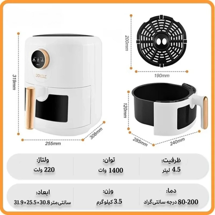 سرخ کن بدون روغن هواپز 4.5 لیتری شیائومی Zolele Air Fryer ZA004 4.5L