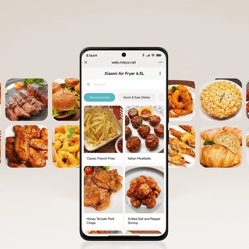 معرفی و مشخصات کامل سرخکن بدون روغن 6.5 لیتر شیائومی مدل Xiaomi Air Fryer 6.5L MAF-W6051 اگر به دنبال سرخکن بدون روغنی هستید که واقعاً کار شما را در آشپزی راحتتر کند، احتمالاً نام سرخکن بدون روغن 6.5 لیتر شیائومی مدل Xiaomi Air Fryer 6.5L MAF-W6051 را شنیدهاید. این مدل فقط یک نسخه بزرگتر از سریهای قبلی نیست. شیائومی ظرفیت، قدرت حرارتی را به شکلی ارتقا داده تا دستگاهی ارائه دهد که بتواند نقش کامل تری در آشپزخانه بر عهده بگیرد. وقتی ظرفیت واقعی 6.5 لیتر، دمای 220 درجه، حالت چربیزدایی در یک محصول جمع میشود، نتیجه چیزی فراتر از یک سرخکن معمولی است. چرا سرخکن بدون روغن 6.5 لیتر شیائومی مدل Xiaomi Air Fryer 6.5L MAF-W6051 بهترین انتخاب برای خرید است؟ شیائومی در این Air Fryer 6.5L MAF-W6051 مشکل اصلی کاربران یعنی حجم کم مخزن را با یک ظرف 6.5 لیتری واقعی حل کرده است. اما ماجرا همینجا تمام نمیشود. حالت چربیزدایی (Degrease)، دمای 220 درجه و گردش هوای 360 درجه، این ایرفرایر شیائومی را یک سرخکن همهفنحریف تبدیل کرده است. شما فقط یک دستگاه نمیخرید. یک کمکآشپز سریع، سالم و بسیار کممصرف وارد آشپزخانهتان میکنید. ویژگی مزیت ظرفیت واقعی 6.5 لیتر پخت یک مرغ کامل، حجم زیاد سیبزمینی یا پیتزا در یک نوبت—بدون نیاز به پخت چندمرحلهای. حالت چربیزدایی Degrease خروج چربیهای اضافی و سالمتر شدن غذا—کاملاً مناسب رژیمها و ورزشکاران. گردش هوای همرفتی 360 درجه پخت یکنواخت، بدون نیاز به تکان دادن سبد. غذا بیرون ترد و داخل نرم میشود. بازه دمایی 40 تا 220 درجه از خشککردن میوه تا گریل کردن و برشتهسازی سریع ظرفیت 6.5 لیتر سرخ کن بدون روغن شیائومی وقتی صحبت از سرخکن بدون روغن 6.5 لیتر شیائومی مدل Xiaomi Air Fryer 6.5L MAF-W6051 میکنیم، منظورمان فقط یک عدد روی کاغذ نیست. بلکه طراحی یک مخزن واقعاً جادار و مهندسیشده است. در بسیاری از مدلهای موجود در بازار، ظاهر دستگاه بزرگ است اما فضای داخلی کاربردی نیست. شیائومی این مشکل را در این مدل بهطور کامل رفع کرده و یک سبد با عمق و پهنای کاملاً استاندارد ارائه داده است. در عمل یعنی چه؟ یعنی شما میتوانید: یک مرغ کامل را بدون تکهتکه کردن داخل سبد قرار دهید، یک پیتزای کامل را بدون خمکاری داخل دستگاه بپزید، حجم زیادی سیبزمینی یا بال مرغ را تنها در یک نوبت آماده کنید. اگر قبلاً مجبور بودید غذا را در دو یا چند مرحله بپزید، این بهترین سرخکن بدون روغن شیائومی برای همیشه آن مشکل را از میان برمیدارد. تکنولوژی پخت: تردتر، سالمتر، سریعتر سرخکن بدون روغن 6.5 لیتر شیائومی مدل Xiaomi Air Fryer 6.5L MAF-W6051 فقط یک وسیله آشپزخانه نیست. یک سیستم پخت هوشمند است که به کمک گردش هوای داغ 360 درجه، غذا را تردتر، سالمتر و سریعتر آماده میکند. ترکیب المنتهای پرقدرت با فن پرسرعت باعث میشود حرارت بهصورت یکنواخت در تمام قسمتهای سبد جریان پیدا کند. نتیجه؟ غذایی طلایی، مغزپخت و بدون نیاز به روغن اضافی. برشتهکاری سریع در دمای واقعی 220 درجه: بیشتر ایرفرایرهای موجود در بازار نهایتاً تا 200 درجه بالا میروند، اما این مدل شیائومی یک قدم جلوتر است. رسیدن به 220 درجه واقعی یعنی: پوست مرغ و استیک طلاییتر و تردتر میشود. زمان پخت تا 33٪ کمتر میشود. رطوبت داخل گوشت بهتر حفظ میشود و نتیجه کاملاً «استیک رستورانی» است. اگر عاشق طعم گریل و برشتهکاری حرفهای هستید، این قابلیت یکی از برگهای برنده جدی این مدل است. حالت چربیزدایی هوشمند (Degrease Mode): وقتی صحبت از سلامتی است، این ویژگی نقطه تمایز اصلی این مدل محسوب میشود. در حالت Degrease: چربیهای اشباع داخل بافت غذا ذوب شده و به انتهای مخزن میریزند. طعم غذا حفظ میشود اما چربی نهایی تا 196٪ کمتر از حالت سرخکن معمولی است. برای افرادی که رژیم غذایی دارند، ورزشکاران یا کسانی که دنبال پخت سالم هستند، این قابلیت خیلی کاربردی است. بازه دمایی 40 تا 220 درجه: یک دستگاه، کار چند دستگاه را انجام میدهد با سرخکن بدون روغن شیائومی از خشککردن میوه گرفته تا پخت شیرینی و گریل استیک، همهچیز با یک دستگاه انجام میشود. بازه دمایی ع