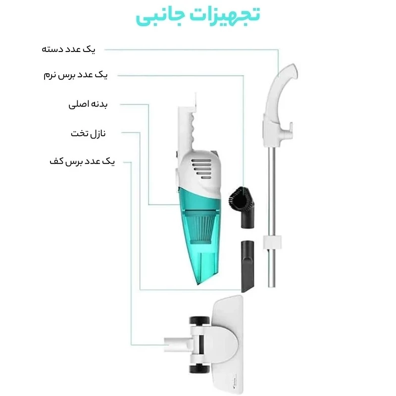 توضیحات یکی از وسایل ضروری برای هر خانه ای جارو برقی است. این وسیله به شما کمک می کند که خرده های غذا، گرد و غبار، خاک و موهای حیوانات خانگی خود را جمع آوری سازید. همچنین این محصول در جمع آوری خاکستر سیگار، مایعات ریخته شده روی سطوح و موارد دیگر کاربرد دارد. جارو برقی شیائومی درما مدل Deerma DX118C محصولی دیگر از برند درما با تمرکز بر سلیقه کاربر طراحی شده است. مشخصات جارو برقی شیائومی درما مدل Deerma DX118C در طراحی این جارو برقی شیائومی نیز از استانداردهای رایج سایر نمونه های موجود در بازار استفاده شده است. در واقع این وسیله نیز از فرم موشکی بسیاری از جاروها پیروی می کند. همچنین استفاده از رنگ سفید و سبز- آبی به جذابیت محصول افزوده است. در ضمن این دستگاه وزنی معادل 1800 گرم دارد. طراحی این جارودستی به گونهای است که امکان قرارگیری آن به صورت کاملا عمودی و تکیه دادن آن به گوشه دیوار وجود دارد. بنابراین این وسیله کمترین میزان فضا را به خود اختصاص میدهد. جارودستی سیمی شیائومی درما DX118C به صورت دو منظوره دستی و عصایی طراحی شده است. بدین ترتیب می توانید با تنظیم ارتفاع دسته از عملکردهای دو منظوره این محصول بهرهمند شوید. شما برای نظافت آسان و بدون دردسر قسمت های مختلف خانه که دسترسی به آن ها مشکل است، می توانید دسته جارو برقی را به طور کامل جمع کنید. همچنین با افزایش ارتفاع دسته جارو کشیدن قسمت های واقع در ارتفاع بالا مانند گوشه های دیوارها، پرده، سقف یا کانال کولر امکانپذیر می شود. در ضمن برای نظافت مکانهایی مانند زیر مبل، تخت و کابینت ها نیز باید طول دسته را زیاد کنید. دسته جارو برقی شیائومی درما مدل DX118C نیز به صورت کاملا ارگونومیک طراحی شده است. از این رو دسته ضد لغزش مذکور به راحتی در یک دست جا میگیرد و احتمال سر خوردن آن از دست کاهش مییابد. 3 برس نظافت نیز برای این جاروی الکترونیک در نظر گرفته شده است. با نصب و جداسازی این برسها میتوانید سطوح مختلف مانند چوب، کاشی، سرامیک، پتو، بالشت، پرده و بسیاری موارد دیگر را نظافت کنید. دو چرخ بزرگ تعبیه شده در زیر برس پهن نیز امکان جابجایی آسان جارو را روی انواع سطوح فراهم می آورد. قابلیت های جارو برقی شیائومی مدل Deerma DX118C مخزنی شفاف برای جمع آوری گرد و غبار در جارو برقی دستی شیائومی Deerma DX118C تعبیه شده است. این مخزن با ظرفیتی برابر با 1.2 لیتر امکان چندین بار جارو کشیدن خانه یا محل کار را به شما می دهد. همچنین امکان جداسازی و تخلیه محتویات درون محفظه نگهدارنده زباله توسط یک دکمه وجود دارد. روند جدا کردن و نصب برس جدید روی بدنه دستگاه نیز بسیار آسان است. همچنین تعویض برس ها به دلیل وزن سبک جارو برقی اتوماتیک درما مدل DX118C به راحتی انجام می شود. همانطور که بیان شد، این محصول 3 برس دارد که هر کدام کاربردهای مختلف خود را دارند. از سری باریک برای جارو کردن گوشه های دیوارها، لبه های پنجره ها، کیبورد، زیر تخت و مبل استفاده می شود. در کل این سری برای نظافت مکان هایی با دسترسی دشوار مانند درز مبل ها مناسب است. از برس گرد و نرم جارو برقی شیائومی درما مدل DX118C نیز برای تمیز کردن مبل های پارچه ای و چرمی و سرویس خواب استفاده می شود. در ضمن این برس عملکرد مناسبی برای نظافت وسایلی با پارچه های بافتنی و پرده دارند. برس گرد به راحتی قادر است که پرز، مو و باکتری ها را از سطوح مختلف جمع آوری کند. برس کف این دستگاه با داشتن ضخامتی برابر با 5 سانتی متر و قابلیت چرخش 90 درجه امکان نظافت زیر مبل و تخت را فراهم می کند. مشخصات سیستم فیلتراسیون جارو برقی DX118C شیائومی درما برای عملکرد بهتر این جارو با سیم از سیستم فیلتراسیون HEPA در آن استفاده شده است. این فیلتر درون مخزن نگهداری زباله دستگاه تعبیه شده است که با جذب موثر آلودگی ها مانع از انتشار آن ها به محیط بیرون شود. فیلتر HEPA با جذب قارچ ها، باکتری ها و کوچکترین ذرات آلاینده به خود هوای محیط را کاملا سالم می سازد. قابلیت جداسازی و شستشو نیز از دیگر ویژگی های این 