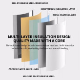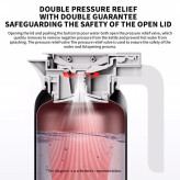 ظرفیت 1.8 لیتر دهانه ضد جریان برگشتی قفل کنترل دما با ماندگاری طولانی داخلی فولاد ضد زنگ 316L طراحی ایمنی انتشار فشار دوگانه دهانه کتری پهن برای تمیز کردن آسان 1.8 لیتر ظرفیت بالا پر از عملی بودن با طراحی داخلی 1.8 لیتری با ظرفیت بالا، میتوانید در هر زمان از نوشیدنی سالم لذت ببرید و بدن و ذهن خود را در طول روز تغذیه کرده و کیفیت زندگی خود را افزایش دهید. قفل سرد 24 ساعته تا زمانی که شما آماده باشید مایعات سرد را به مدت 24 ساعت در دمای کمتر از 15 درجه سانتیگراد نگهداری کنید. عایق 24 ساعته همیشه نوشیدنی شما را گرم نگه می دارد مایعات داغ را بیش از 45 درجه سانتیگراد به مدت 24 ساعت گرم نگه می دارد. طراحی عایق چند لایه با کیفیت در هسته خود ساخته شده است. طراحی قفل درجه حرارت چند لایه به طور موثر اتلاف گرما را به حداقل می رساند، بنابراین می توانید در هر زمانی که بخواهید در دمای دلخواه (گرم یا سرد) نوشیدنی میل کنید. طراوت ترمیمی در صورت تقاضا. به راحتی با فشار دادن و بلند کردن باز می شود رویه شیاردار را می توان به راحتی با استفاده از دو انگشت باز کرد و در عین حال از باز شدن تصادفی آن جلوگیری می کند تا تجربه نوشیدن شما تازه شود. داخلی فولاد ضد زنگ 316L از سلامت خانواده خود محافظت کنید پوشش داخلی از فولاد ضد زنگ 316L ساخته شده است که به دلیل پایداری در دمای بالا شناخته شده است. با آرامش بیشتر از نوشیدنی های مطمئن تر لذت ببرید. دیوار داخلی با استفاده از الکترولیز ساخته شده است که به حفظ تمیزی و طراوت کمک می کند و در عین حال تمیز کردن را آسان تر از همیشه می کند. باز شدن بدون زحمت با یک لمس برای ریختن زیبا دسته ارگونومیک به سبک اهرمی، ریختن صاف و بی دردسر را تنها با یک دست تضمین می کند. عملکرد آب بندی استثنایی از نشت حتی زمانی که کتری معکوس است جلوگیری می کند. یک ویژگی ایمنی متفکرانه برای محافظت از کل خانواده. دهانه ضد آب برای یک میز میز مرتب دهانه منقاری شکل جریانی یکنواخت را فراهم می کند و مایع را پس از ریختن قطع می کند و به طور موثر از پاشیدن، چکیدن و جریان برگشتی جلوگیری می کند. بدنه کتری و میز شما را خشک و تمیز نگه می دارد. آزادسازی فشار دوگانه برای محافظت مضاعف ایمنی در هنگام باز کردن و ریختن باز کردن درب و ریختن هر دو باعث فعال شدن شیر فشار شکن می شود و به سرعت فشار منفی داخل کتری را از بین می برد تا از خروج غیرمنتظره مایع داغ جلوگیری شود و در هنگام باز شدن درب و ریختن مایعات از ایمنی شما محافظت کند. دهانه کتری پهن برای پر کردن و تمیز کردن راحت با طراحی دهانه 71 میلی متری آن، پر کردن کتری با آب بدون دردسر است. همچنین امکان تمیز کردن عمیق را با یک دست فراهم می کند تا از تجمع کثیفی و کثیفی جلوگیری کند.