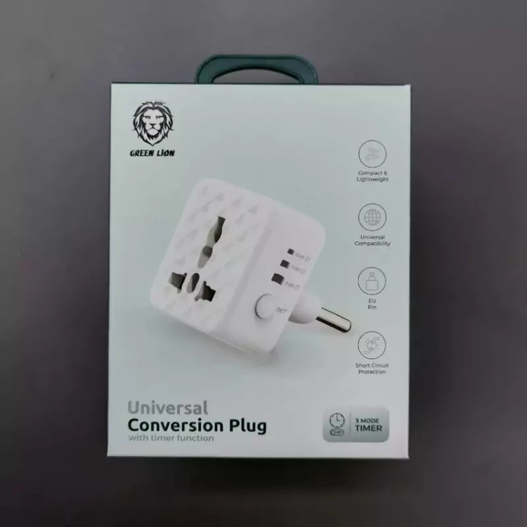 تبدیل برق جهانی 3 به 2 تایمردار گرین لاین Green Lion Universal Conversion Plug With Timer Function