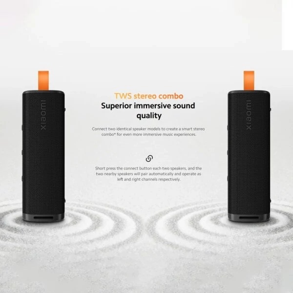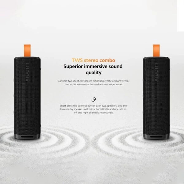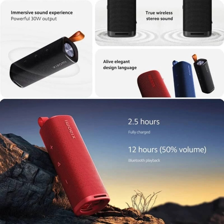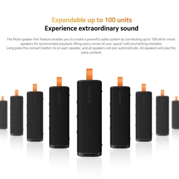 اسپیکر قابل حمل شیائومی مدل Speaker MDZ-38-DB Xiaomi Sound Outdoor اسپیکرهای پرتابل، مانند مدل Xiaomi Sound Outdoor MDZ-38-DB ، به دلیل قابلیت های خاصی که دارند، همراهی بسیار مناسبی برای تفریحات و فعالیت های خارج از منزل ارائه می دهند. این اسپیکرها با طراحی مقاوم در برابر آب، گرد و غبار و ضربه، مناسب برای استفاده در محیط های باز مانند سفرهای کوهستانی، پیک نیک ها، و گردهمایی های خانوادگی هستند. توانایی پخش صدای با کیفیت بالا، اتصال بی سیم از طریق بلوتوث، و باتری با عمر طولانی، این اسپیکرها را به انتخابی عالی برای لذت بردن از موسیقی در هر زمان و مکانی تبدیل می کند. این اسپیکر دارای استانداردهای مقاومت در برابر آب و گرد و غبار است که امکان استفاده ی آسان و بدون نگرانی از شرایط جوی را فراهم می سازد. با استفاده از تکنولوژی بلوتوث نسخه 5.4، اتصال به دستگاه های مختلف بدون نیاز به کابل ممکن می شود و با باتری قدرتمند، مدت زمان پخش طولانی را فراهم می کند. Outdoor قابل حمل و سبک: اسپیکر قابل حمل شیائومیXiaomi Sound Outdoor MDZ-38-DB با طراحی کوچک و کاربردی، مناسب برای استفاده در فضاهای باز و فعالیت های خارج از منزل طراحی شده است. ابعاد این اسپیکر حدوداً 20 سانتی متر در طول، 7 سانتی متر در عرض و 7 سانتی متر در ارتفاع دارد. وزن آن نیز تقریباً 600 گرم است که آن را بسیار سبک و قابل حمل میکند. شکل ظاهری این اسپیکر بسیار مدرن و زیبا است. با طراحی ساده و زاویه های گرد و نرم، این اسپیکر ظاهری زیبا و آرمانی دارد که می تواند به آسانی با هر نوع دکوراسیون و محیطی تطبیق پذیر باشد. بدنه این اسپیکر از جنس مقاومی ساخته شده است که در برابر ضربات و خطوط خوردگی مقاوم است. دستگیره ای که در بالای اسپیکر قرار دارد، از جنس مواد نرم و با کیفیت است که امکان حمل آسان و راحت این اسپیکر را فراهم می سازد. دکمه های کنترل اسپیکر در قسمت بالای بدنه قرار دارند. این دکمه ها شامل دکمه های تنظیم ولوم، دکمه پخش/توقف موسیقی، دکمه پخش موسیقی بعدی/قبلی، و دکمه برای اتصال به دستگاه های بلوتوث می باشد. صدای دینامیک و پر قدرت با توان خروجی صدا 30 وات: اسپیکر قابل حمل شیائومیXiaomi Sound Outdoor MDZ-38-DB با توان خروجی 30 وات، قادر است صدایی قوی و پرقدرت را تولید کند. این توان خروجی بالا به کاربر امکان می دهد تا حتی در محیط های باز و در فضاهای بزرگ، صدایی بلند و واضح را تجربه کند بدون اینکه کیفیت صوت کاهش یابد. علاوه بر این، این اسپیکر شیائومی دارای صدای دینامیک است و به معنای این است که توانایی آن در تولید صدایی با پویایی بالا و جزئیات دقیق می باشد و موسیقی به شکل طبیعی و جذابی پخش می شود همچنین انتقال صحیح اجزای مختلف فرکانسی صدا تضمین می شود. صدای باس دینامیک: یکی دیگر از ویژگی های برجسته اسپیکر Xiaomi Sound Outdoor، انعطاف پذیری در تولید باس دینامیک است. این اسپیکر قادر است به فرکانس های پایین تر (باس) نیز پاسخ دهد و بدون محدودیت در حدود ووفر، باس های قدرتمندی را ارائه دهد. این ویژگی به کاربر امکان می دهد تا حتی از یک اسپیکر کوچک مانند Xiaomi Sound Outdoor، صداهای باس قوی و عمیق را تجربه کند. دارای استاندارد IPX7 ضد آب: اسپیکر Xiaomi Sound Outdoor با استاندارد IPX7 ضد آب عرضه شده است. این اسپیکر می تواند در شرایطی که در معرض آب قرار گیرد، بدون مشکل عمل کند. IPX7 به معنای تحمل اسپیکر در برابر آب تا عمق 1 متر و به مدت حداکثر 30 دقیقه است.برای جلوگیری از نفوذ آب به داخل اسپیکر، تمام نقاط و درزهای اسپیکر به طور کامل محکم سازی شده اند و اندازه گیری دقیقی در این زمینه صورت گرفته است. قابلیت اتصال چندگانه Multi-speaker Pair: با استفاده از ویژگی Multi-speaker Pair، می توانید تا 100 اسپیکر دیگر از همین مدل (Xiaomi Sound Outdoor) را به یکدیگر متصل کنید. این اسپیکرها به طور خودکار با هم همگام سازی می شوند تا همه به طور همزمان محتوای صوتی یکسانی را پخش کنند. برای فعال سازی این ویژگی، باید دکمه اتصال (connect button) روی هر یک از اسپیکرها را به مدت 3 ثانیه فشار دهید. این کار باعث می شود که همه اسپیکرها به 