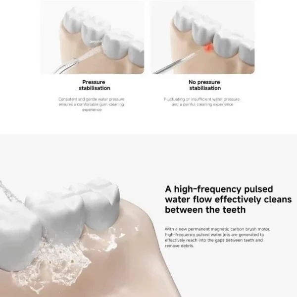 فروشگاه می قم واتر فلاشر 2 شیائومی مدل Water Flosser Mijia ME0705، بار دیگر سطح بهداشت دهان و دندان را ارتقا داده است. این دستگاه جایگزینی مدرن و مؤثر برای نخ دندان سنتی است و با استفاده از فشار متمرکز آب، پلاکها، باقیمانده غذاها و باکتریها را از فضاهای بیندندانی و لثه پاک میکند. طراحی بیسیم، نازلهای متنوع و قابلیت تنظیم فشار، آن را به گزینهای حرفهای برای مراقبت روزانه از دندانها تبدیل کرده است. این مدل برای افرادی که از بریس، ایمپلنت، پروتزهای دندانی یا لثههای حساس استفاده میکنند بسیار مناسب است، زیرا برخلاف نخ دندان معمولی، آسیبی به بافت لثه نمیزند و در عین حال تمیزی عمیقتری ارائه میدهد. ویژگیهای واتر فلاشر 2 شیائومی مدل Mijia ME0705 فناوری پالس هوشمند با فشار قوی این مدل مجهز به موتور پیشرفته با قدرت فشار آب تا 140 PSI و فرکانس پالس 1400-1800 بار در دقیقه است. این قابلیت باعث پاکسازی عمیق بین دندانها و خط لثه میشود. چهار حالت عملکرد برای انواع نیازها دارای حالتهای مختلف: Soft (نرم) برای لثههای حساس Standard (معمولی) برای استفاده روزانه Strong (قوی) برای پاکسازی عمقی Pulse برای ماساژ لثه و افزایش گردش خون نازلهای متنوع با طراحی ضد چرخش در جعبه این دستگاه، چند سری با کاربردهای مختلف وجود دارد؛ از جمله سری استاندارد، سری برای تمیز کردن لثه و سری مخصوص کاربران دارای بریس. طراحی 360 درجهی نازلها امکان چرخش آزاد و تمیز کردن آسان همه نواحی دهان را فراهم میکند. مخزن آب 240 میلیلیتری با طراحی ضد نشت مخزن بزرگ آن قابلیت استفاده مداوم تا 60 ثانیه را فراهم کرده و قابلیت جداسازی برای شستوشوی آسان دارد. طراحی ضدنشت، حمل آن را در سفرها نیز ممکن میسازد. باتری قدرتمند و شارژ سریع مجهز به باتری لیتیومی با ظرفیت بالا که تنها با یک بار شارژ کامل (در حدود 4 ساعت)، امکان استفاده تا 30 روز را فراهم میکند. شارژ از طریق پورت USB Type-C انجام میشود. ساختار ضدآب با گواهینامه IPX7 قابلیت استفاده در حمام و شستوشوی آسان در شرایط مرطوب، بدون نگرانی از آسیب به دستگاه. مزایای استفاده از واتر فلاشر 2 شیائومی مدل Mijia ME0705 پاکسازی حرفهای و کامل فضای بین دندانها بهبود سلامت لثه و کاهش التهاب جایگزینی مؤثر برای نخ دندان سنتی ایدهآل برای افرادی با ارتودنسی یا ایمپلنت سبک و قابل حمل برای سفر کاملاً بیسیم با طراحی ارگونومیک