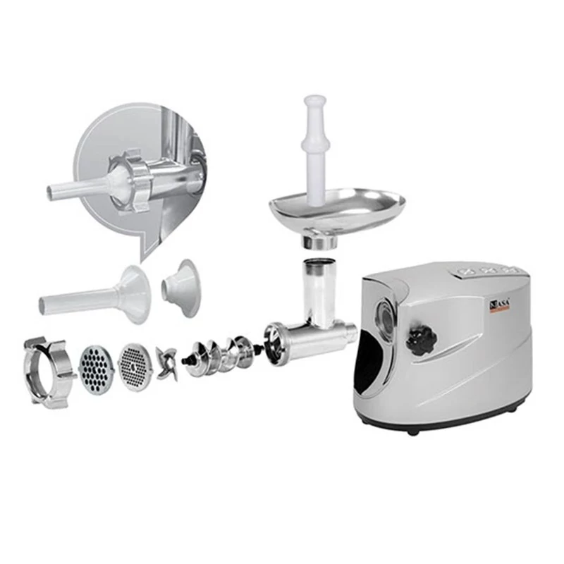 دو نوع شبکه برش از جنس استیل ضد زنگ وظیفه چرخ کردن گوشت را بر عهده دارند، تیغههای برش دهنده و میله حلزونی از جنس اسیتل ضد زنگ بوده و بر اثر بارها شستشو و قرار گرفتن در معرض آب دچار زنگ زدگی و تغییر کیفیت نمیشوند. طراحی زیبا در کنار کارآیی راحت از ویژگیهای جدا نشدنی این محصول هستند. در نهایت این مجموعه که جهت چرخ کردن گوشت به کار میرود با قیمت مناسب قابل خریداری است.